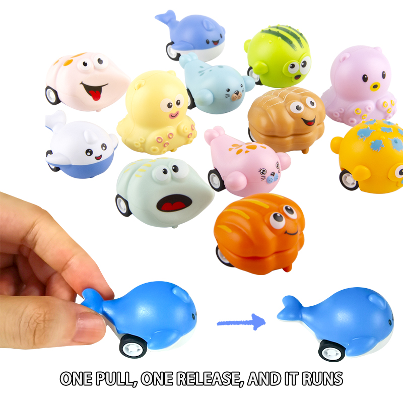 Introducing our exciting new 12-piece pull back car toy set, featuring 6 adorable ocean animal styles in 2 vibrant colors each. These cute and colorful mini cars are the perfect gift for toddlers and children, making them an ideal choice for Christmas, Halloween, Easter, birthdays, and other holidays.