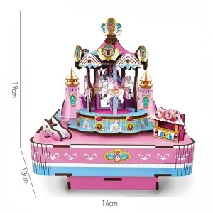 90pcs Wooden Merry-go-round Music Box DIY 3D Puzzle Toys- Rotating Model & STEM Gift