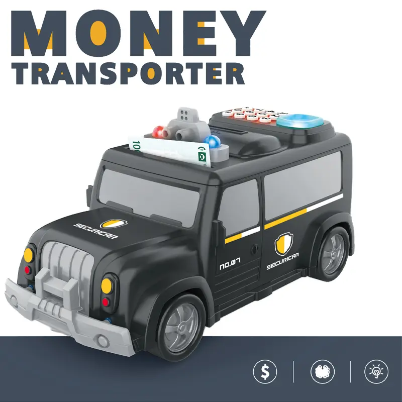This car piggy bank features explosion-proof vehicle school bus police car designs, combining money saving function with toy appeal to stimulate children's collection interest.