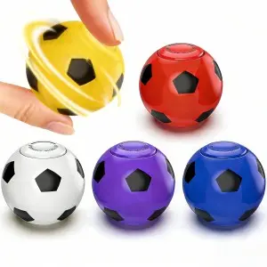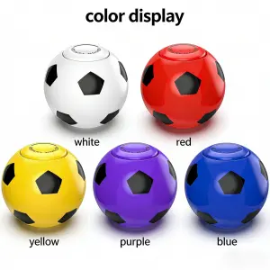 1. Soccer ball design mini fidget spinner, 4.6cm compact size in five colors (white/yellow/red/purple/blue), easily portable as a travel companion and daily stress relief toy.