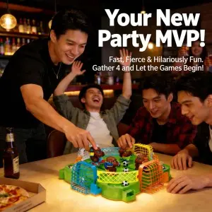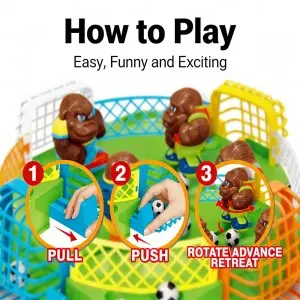 1. 4-Player Competitive Tabletop Soccer Game: An engaging board game for 4 players to compete simultaneously. Players control gorilla pieces to play soccer, aiming to be the first to kick the ball into the opponent's goal. Features simple rules and exciting competition.