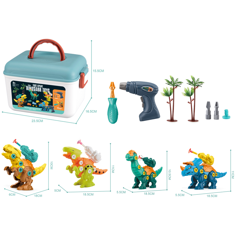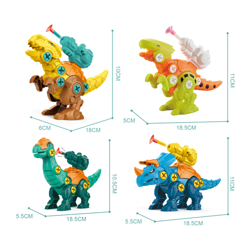 Kids STEM Education DIY Construction Kit Soft Bullets Dart Launch Screws Assembly Dinosaur Toy Set with Drill & Storage Box