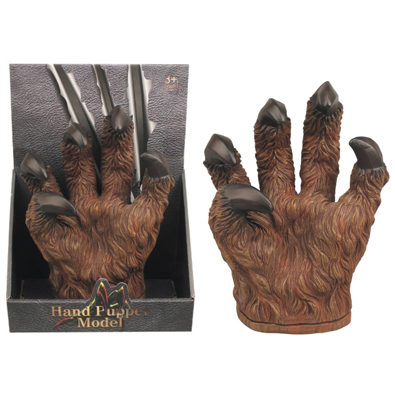 As a wearable hand puppet, its claw-tipped fingers can be manipulated individually to simulate dynamic actions like grabbing, slapping, and playful threatening gestures. It allows children to safely role-play as friendly or mischievous monsters, releasing energy through action-oriented role-play.