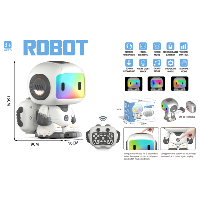 The Backpack Robot features a touch mode that activates lights and music with a simple tap on its head, while a long press enters repeat mode for continuous fun. Kids can record their own messages with the chest recording button, capturing up to 30 seconds of sound, and unleash their creativity with the programming mode that supports up to 20 instructions. For those who love to dance, a one-click automatic dance demonstration is sure to get everyone moving!