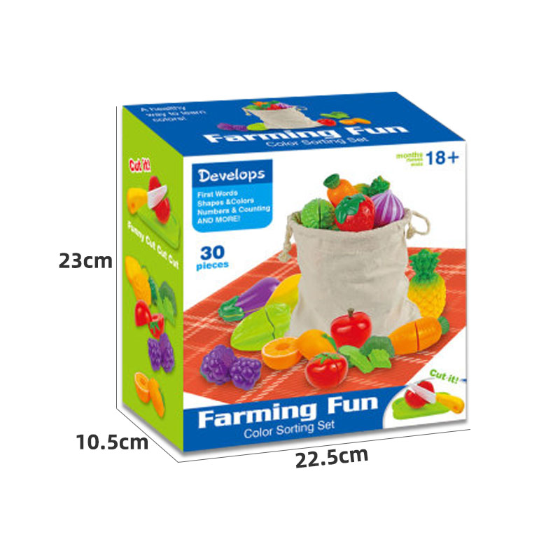 The Cutting Food Toy Set comes complete with two cutting boards and safety kitchen knives, ensuring that children can safely practice their cutting skills while developing essential hand-eye coordination and fine motor abilities. As they sort and store the colorful ingredients, children will also establish basic color recognition and geometric shape cognition, laying the foundation for future learning.