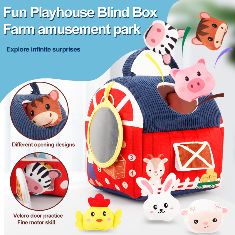 Toddlers Enlighten Gift Baby Portable Fabric Farm Cabin Educational Early Learning Farm Playhouse Toy with 6 Cartoon Animals