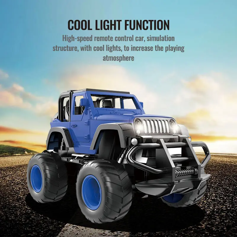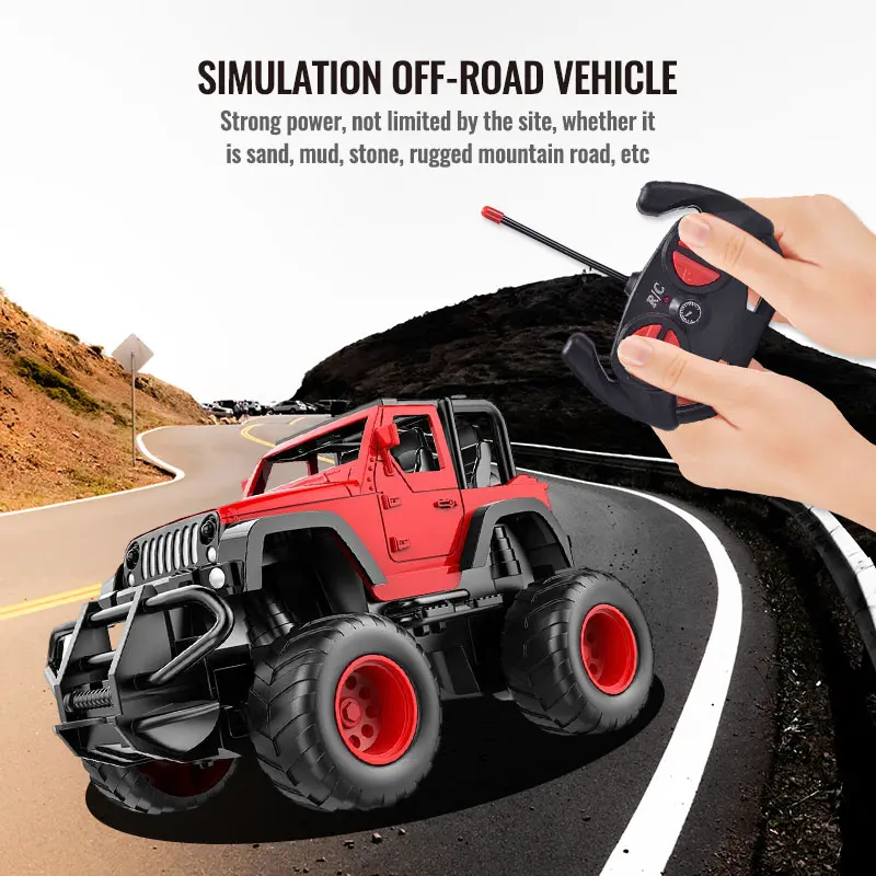 This product is a 4-channel remote control simulation off-road vehicle, equipped with lights. It features powerful off-road capability, unrestricted by terrain, whether on sand, mud, rocks, or rugged mountain paths. With realistic structural controls and 4-channel remote operation, it can move forward, backward, turn left, and turn right.