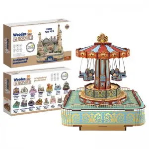 This product is a wooden DIY 3D puzzle themed around an amusement park swing ride. Assembling the hanging seats and rotating canopy not only develops fine motor skills but also provides an intuitive understanding of basic structural and mechanical balance principles, offering a greater challenge.