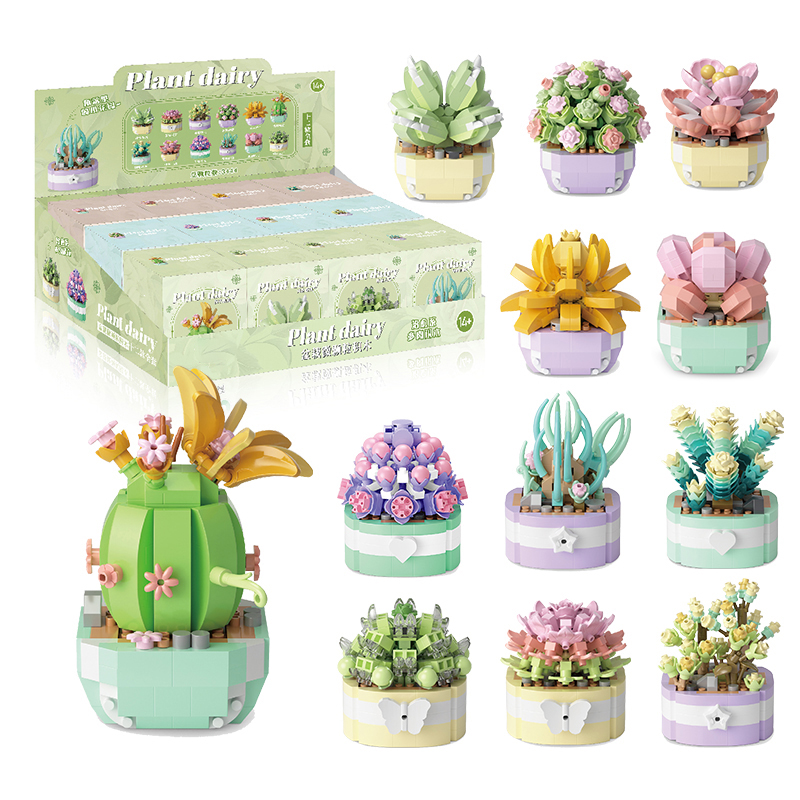 Die e sii Ohun ọṣọ Ile DIY Simulation Bouquet Kids Creative Assemble Succulent Plant Toy Children Construction Potted Building Blocks